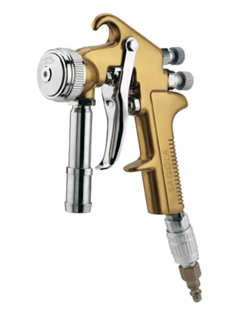 Pistola Sagola 4001B, para la proyeccion de gotele. Se monta en calderi­n de 30Ltr. Pico de fluido y aguja en acero inoxidable. Consumo Aire: 200L/min. a 3,5 bar. Boquillas: 2,8 3,2 y 4