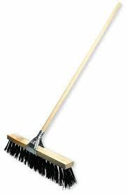 Cepillo barrendero con mango y grapa metálica zincada de sujeción. Pelo de fibra PVC de 1,20mm, 90mm de longitud y armazon de madera.