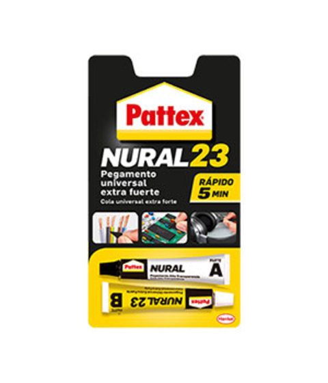 Pattex Nural 36 es una masilla adhesiva para restaurar y reparar todo tipo de material de obra y conducciones metálicas o de PVC que se adhiere sobre superficies húmedas y endurece incluso bajo el agua. Pattex Nural 36 se moldea como la plastilina y adquiere la consistencia de piedra una vez endurecida.